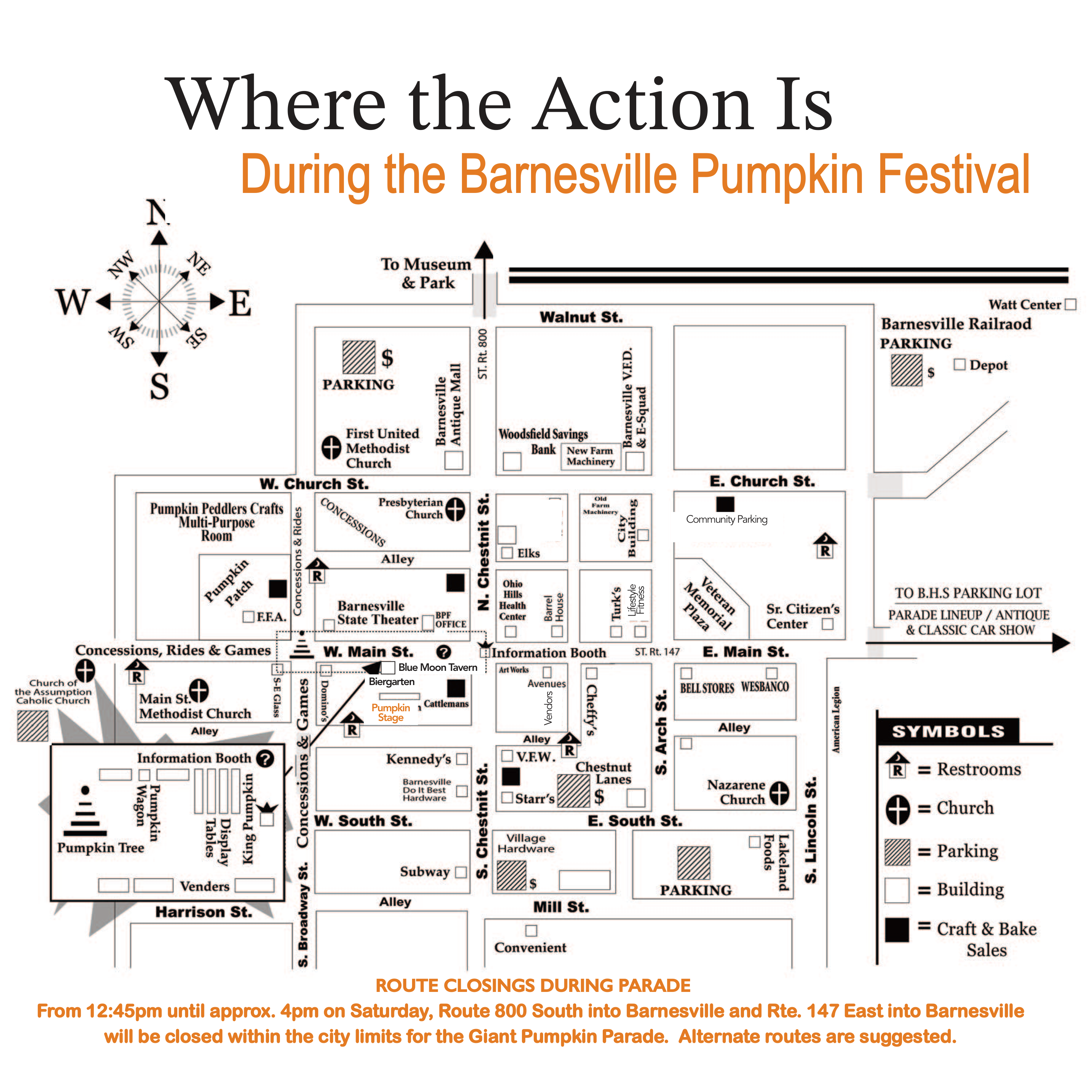 From 12pm until approx. 4pm on Saturday, Route 800 south into Barnesville and Rte. 147 East into Barnesville will be closed within the city limits for the Giant Pumpkin Parade. Alternate routes are suggested.
