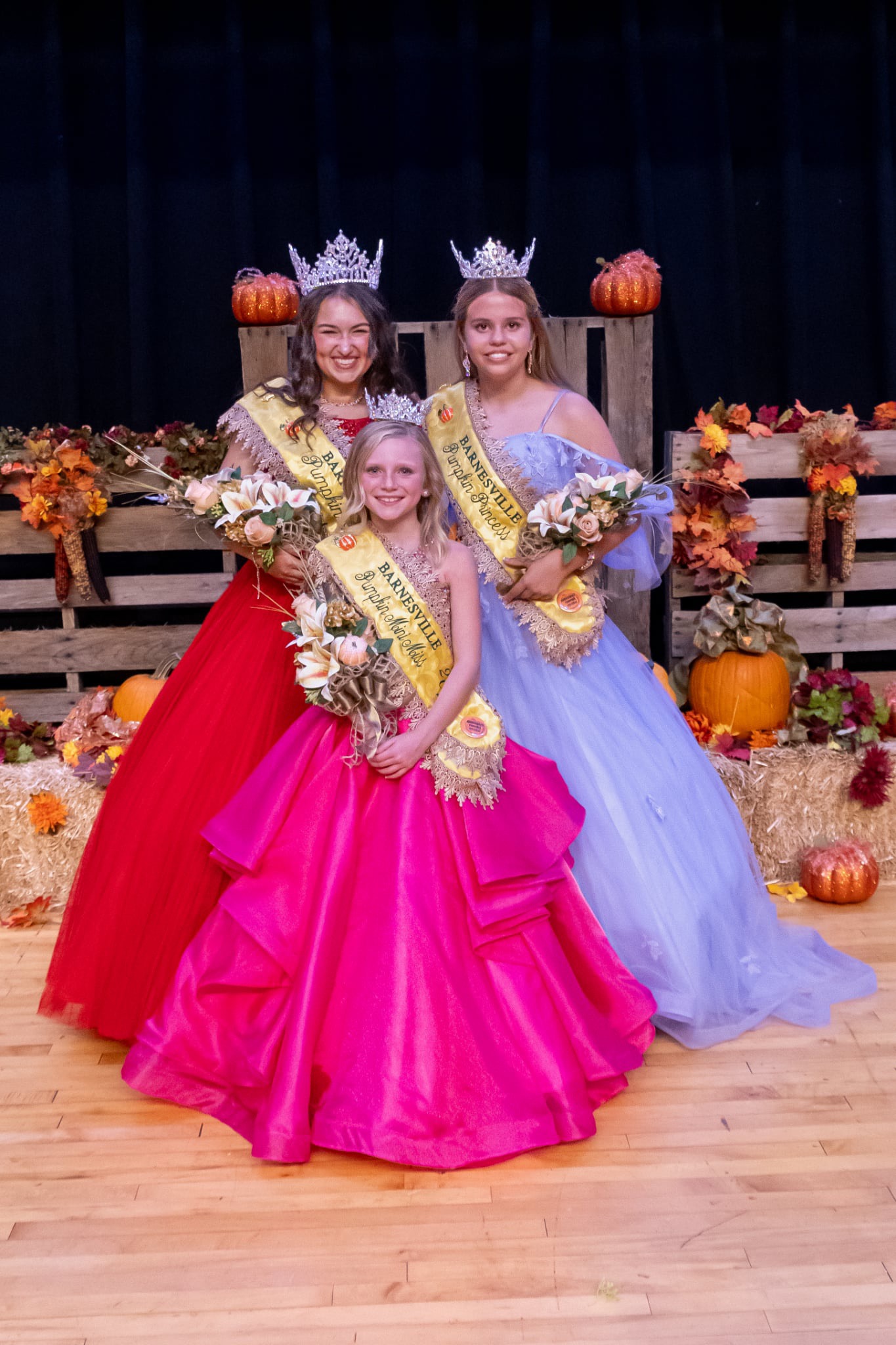 The Barnesville Pumpkin Festival will be holding their annual Queen, Princess and Mini Miss Pageant on Sunday, September 21, 2025 at Barnesville High School. Areas of competition include Private Interview with a panel of judges, evening gown modeling, on stage introduction, and the contestants choice of a talent presentation. Age divisions are Mini Miss 6-9 years old, Princess 10-13 years old, and Queen 14-19 years old. We will award a winner and two runner ups per age division, everyone will receive a gift for participating, and the winners will receive a beautiful rhinestone crown, our signature gold sash, a bouquet of flowers, a ceramic pumpkin topped trophy, cash awards and more! You do not need to be from the Barnesville area to enter. To register please fill out the information below and submit no later than September 5, 2025.